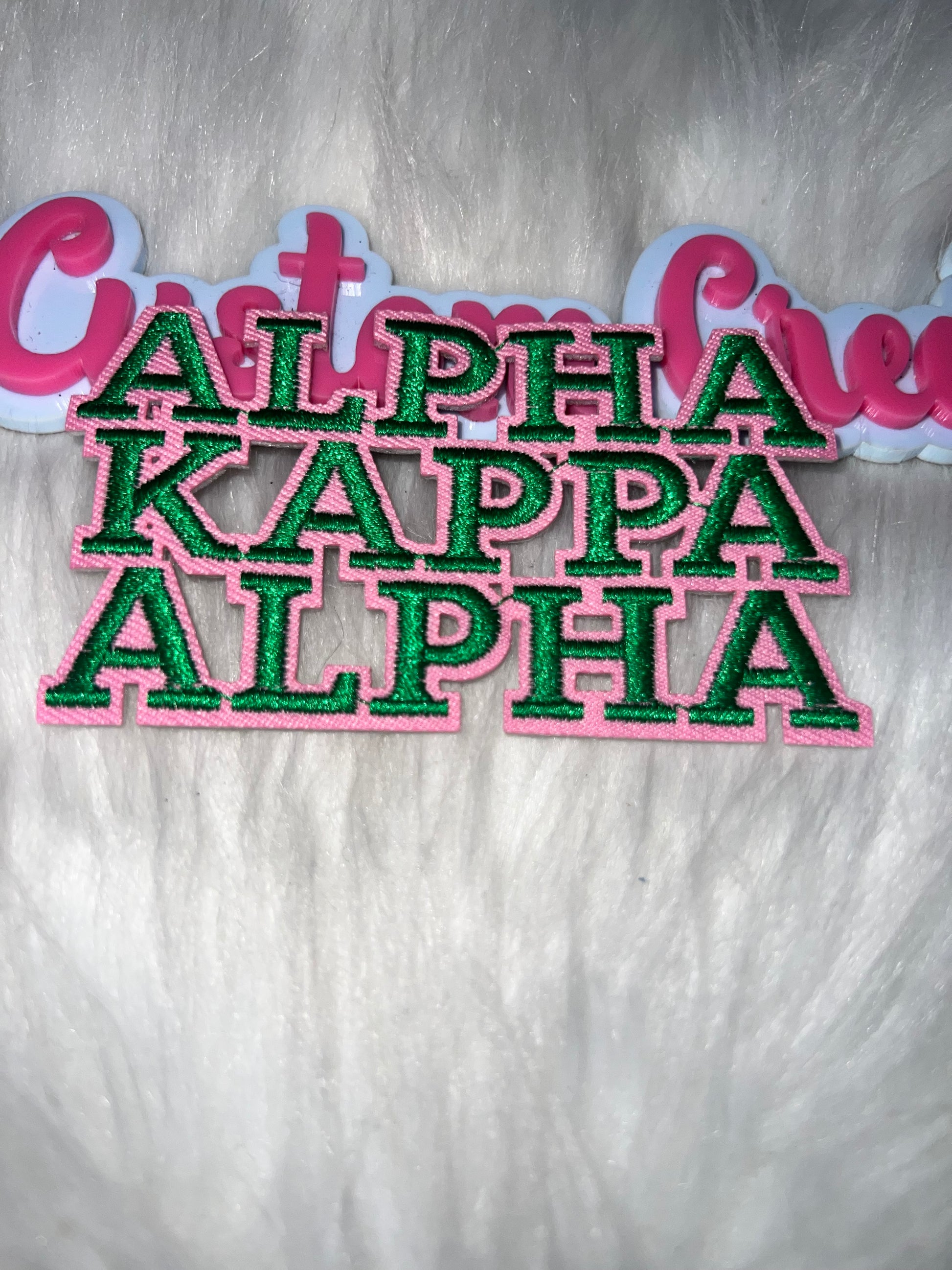 AKK Beautifully stitched Greek letter IRON-ON patch with vibrant colors and detailed embroidery. Perfect for customizing sorority jackets, sweatshirts, bags, and more