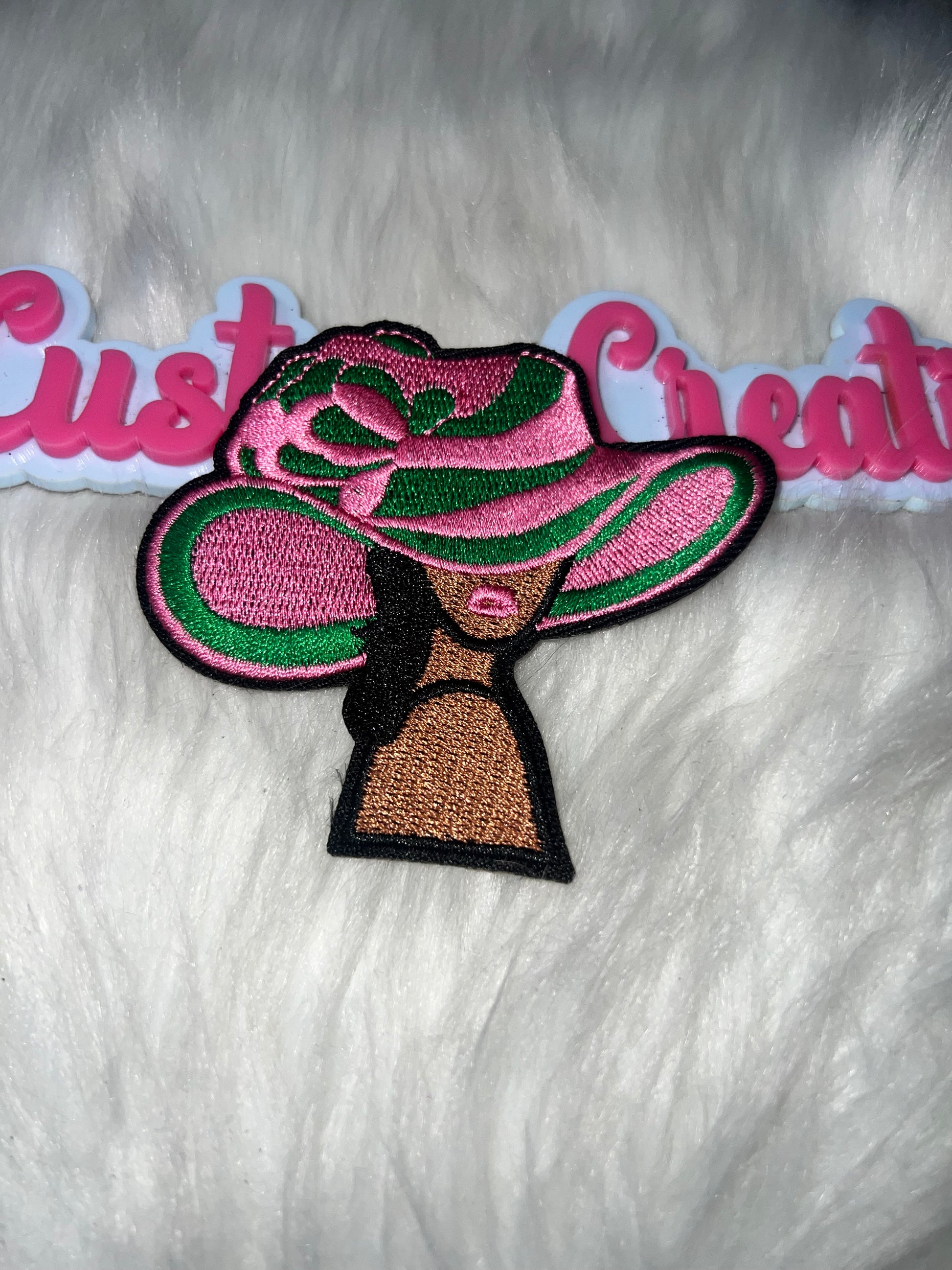 ⭐ Fashion Lady Hat (Pink & Green) – IRON-ON PATCH AKA colors