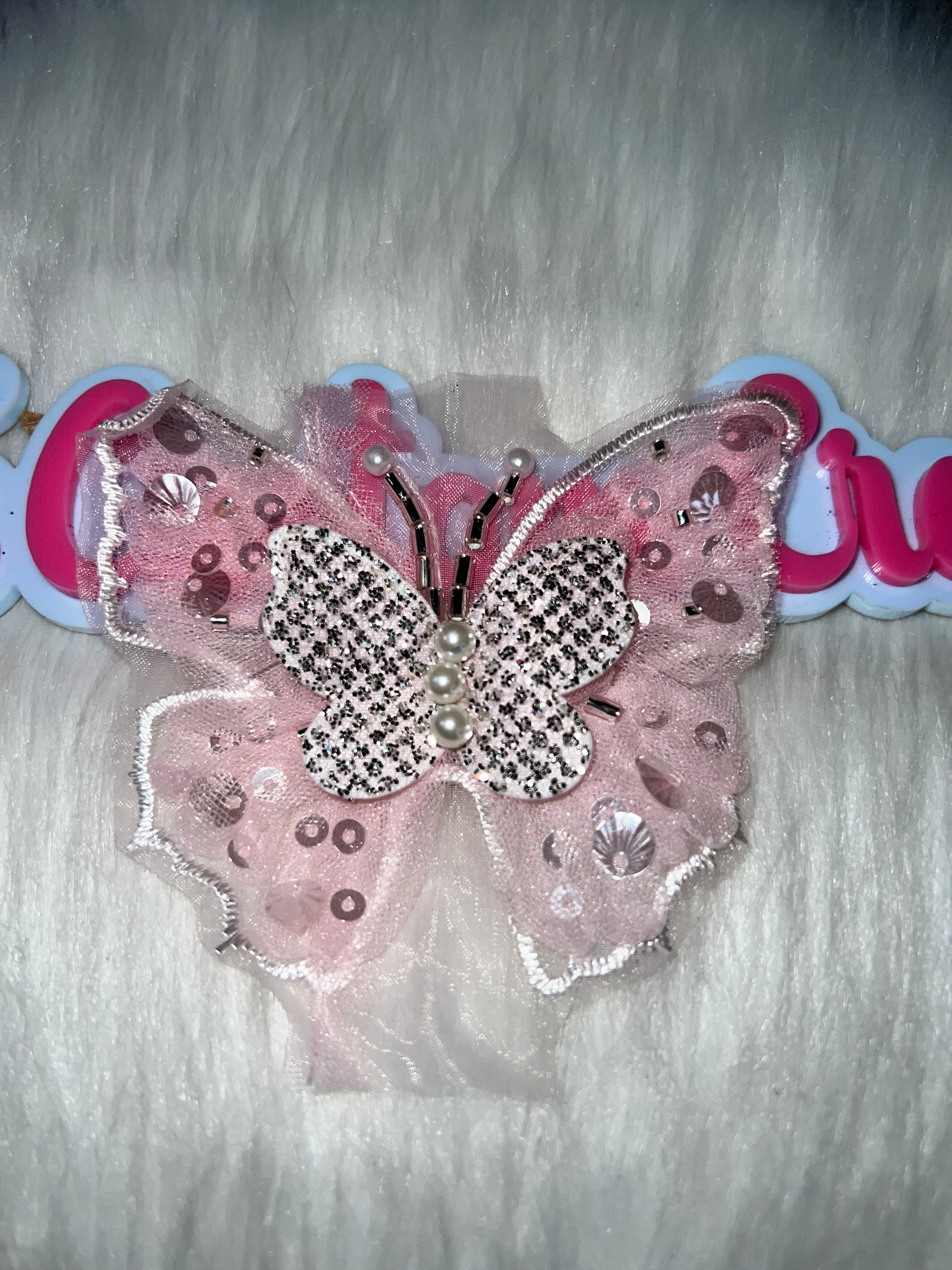 πŸ¦‹πŸ’• Pink Sequin & Pearl Layered Butterfly