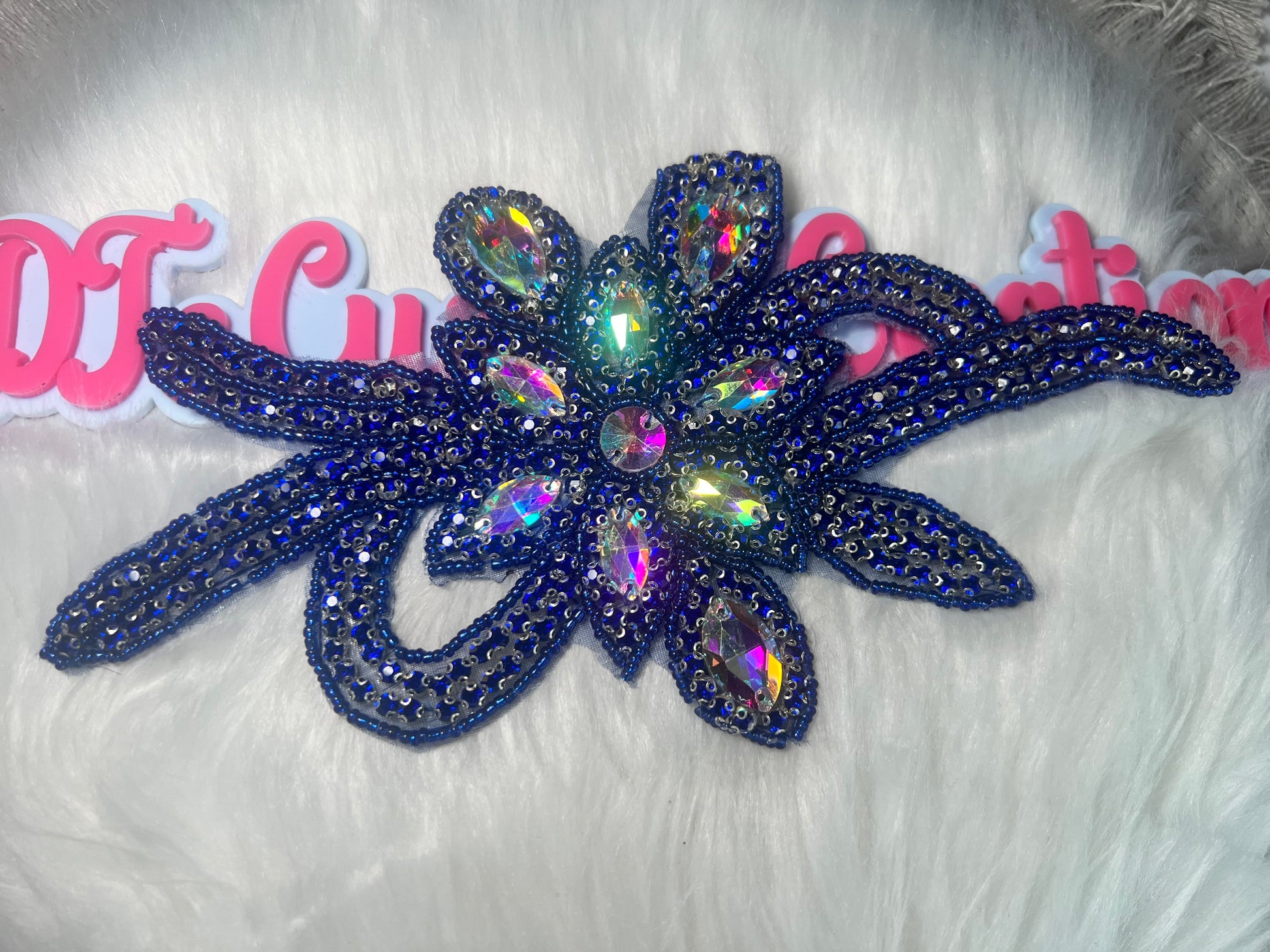 Bling royalty! Deep royal-blue stones paired with AB crystals create a mesmerizing sparkle that stands out on any surface. Ideal for hats, jackets, or one-of-a-kind statement pieces.