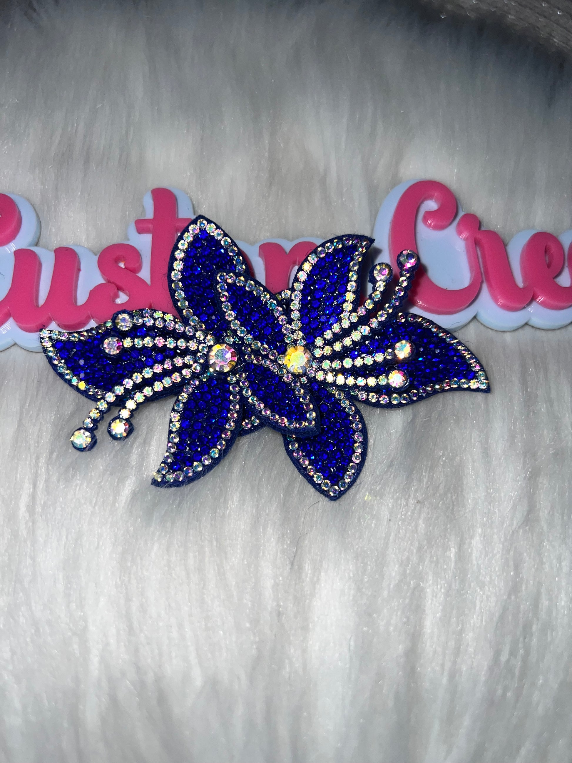 This Royal Blue Rhinestone Flower Patch is a true showpiece! Sparkling with rich sapphire stones and AB crystal trim, it adds classy bling to any design.