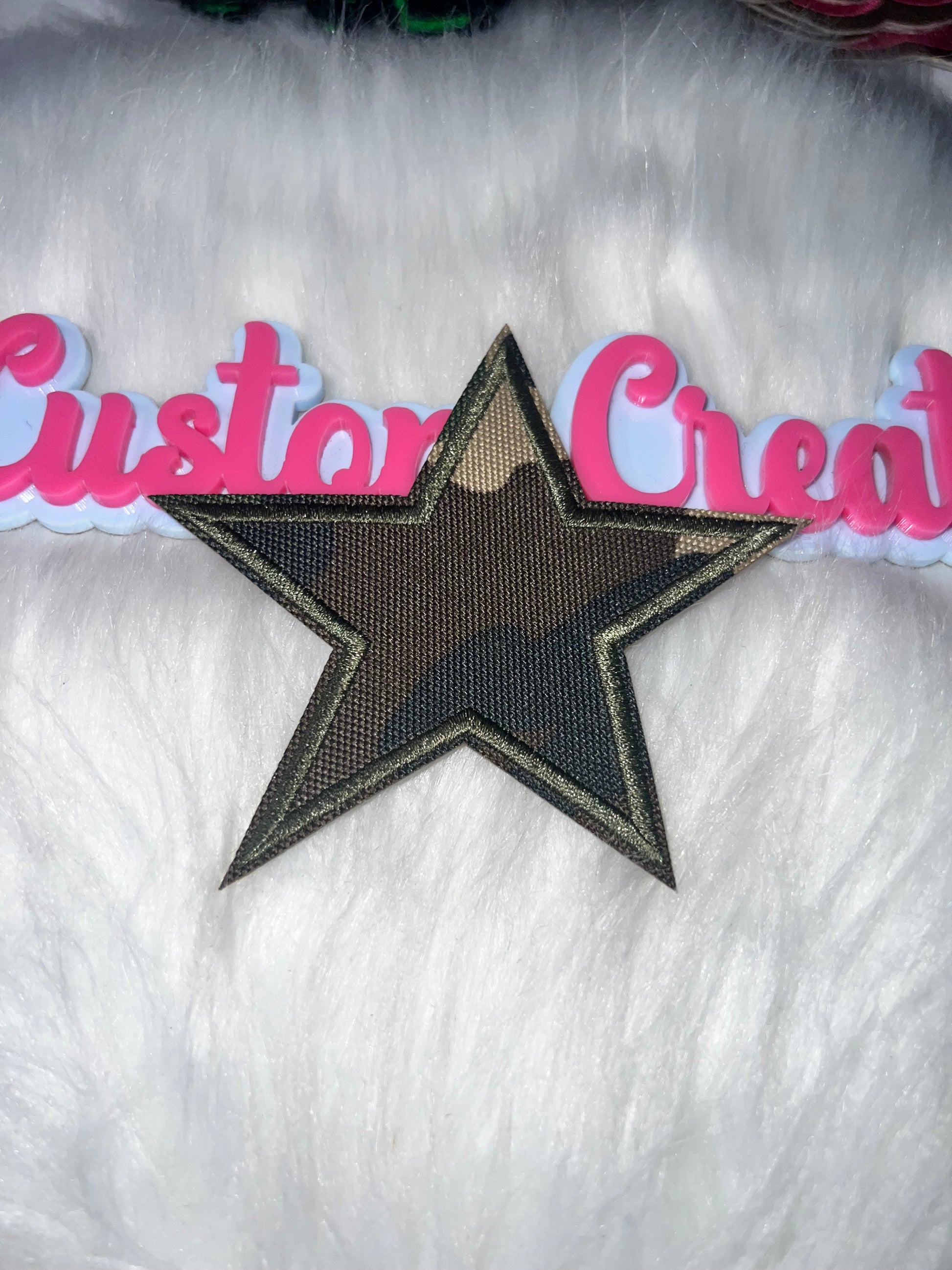 Add that military-inspired edge with this camo star patch, perfect for custom denim, hats, or Crocs. The dark olive trim gives a clean, strong finish.