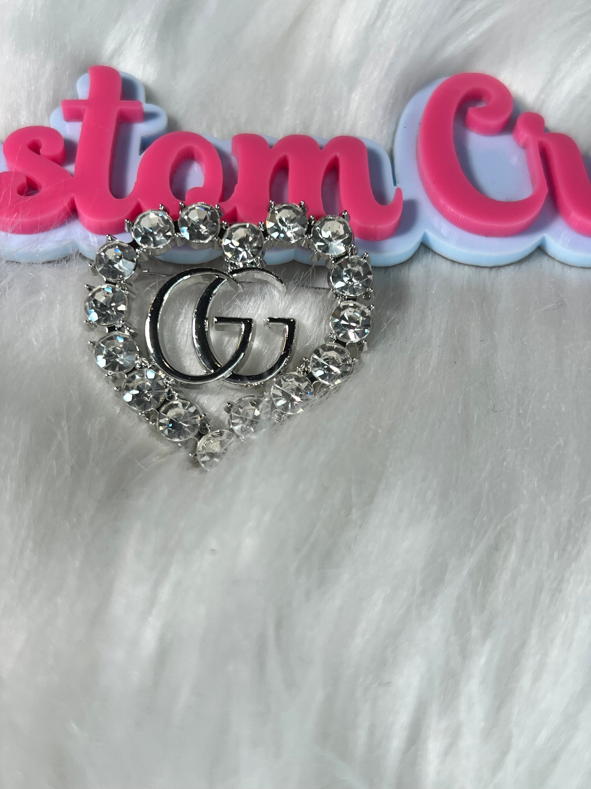 Icy and elegant! A silver-framed heart lined with sparkling clear rhinestones surrounding the GG emblem. Perfect for that frosted-glam finish.