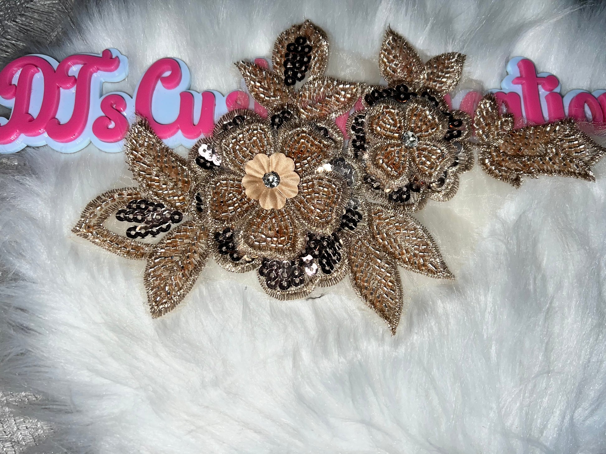 🪶 Gold & Bronze 3D Beaded Floral Appliqué – Sew or Glue On