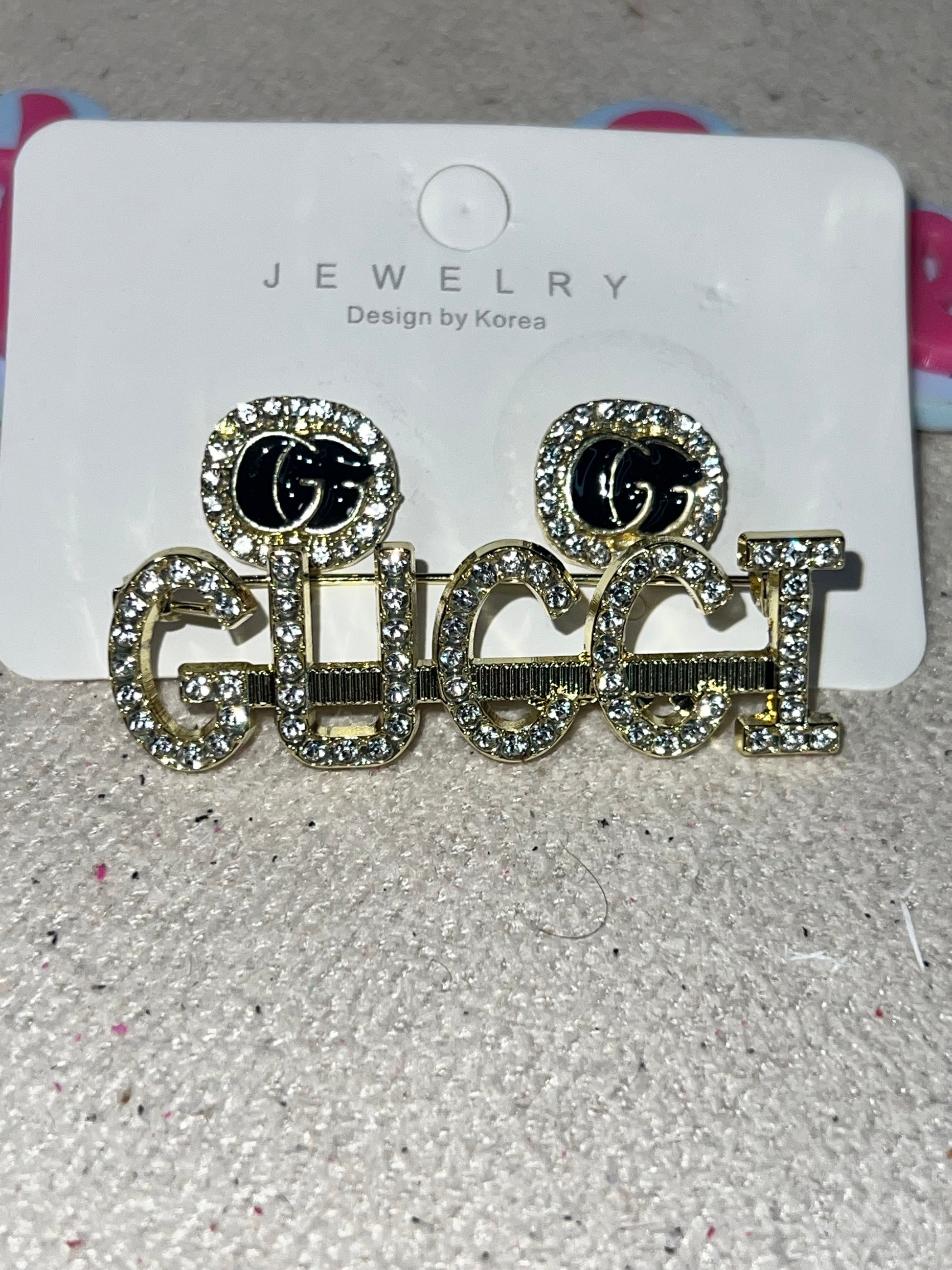 Style: GG Earrings + GG Letter Rhinestone Brooch