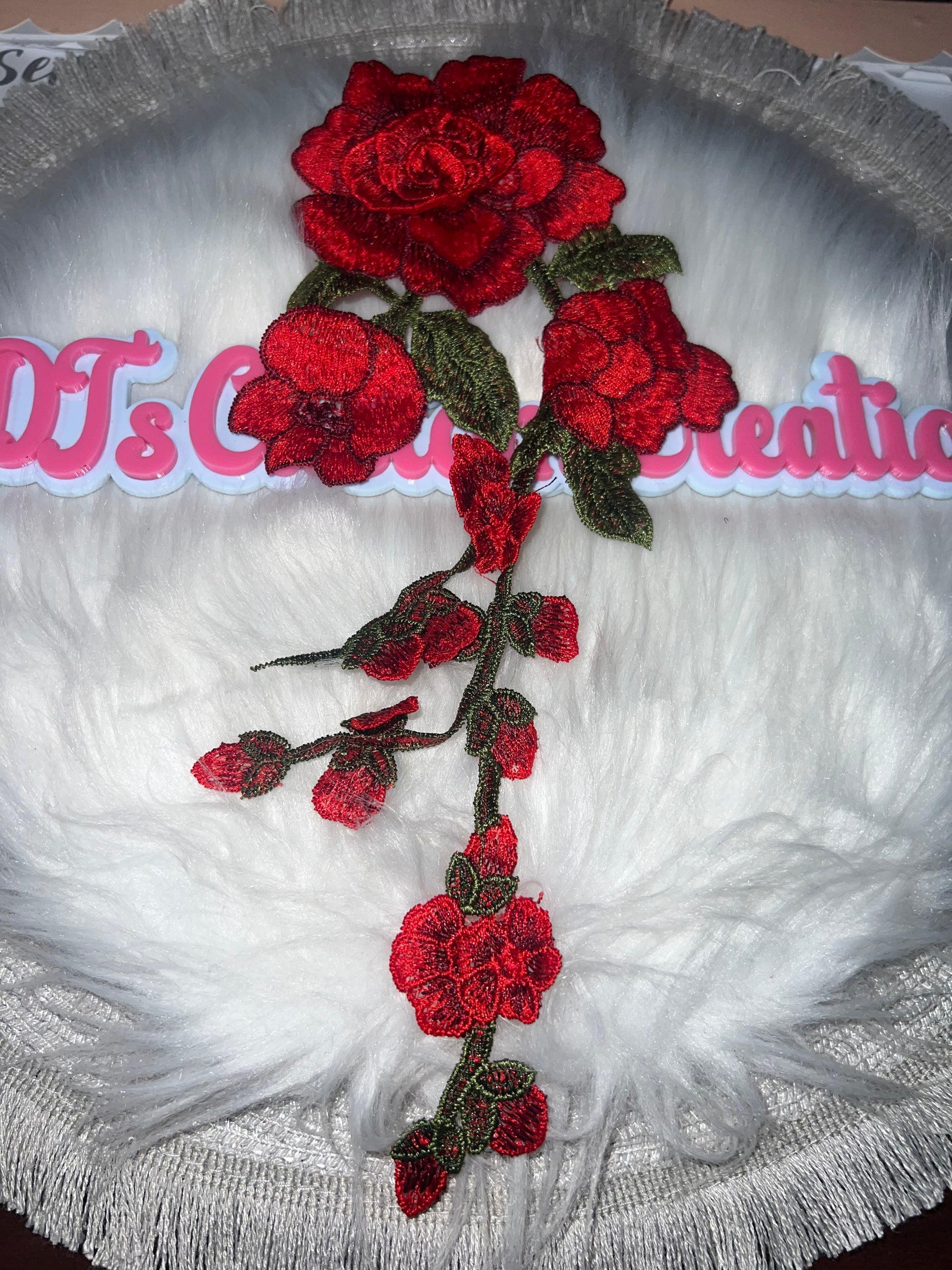 Long Red Rose Vine Appliqué