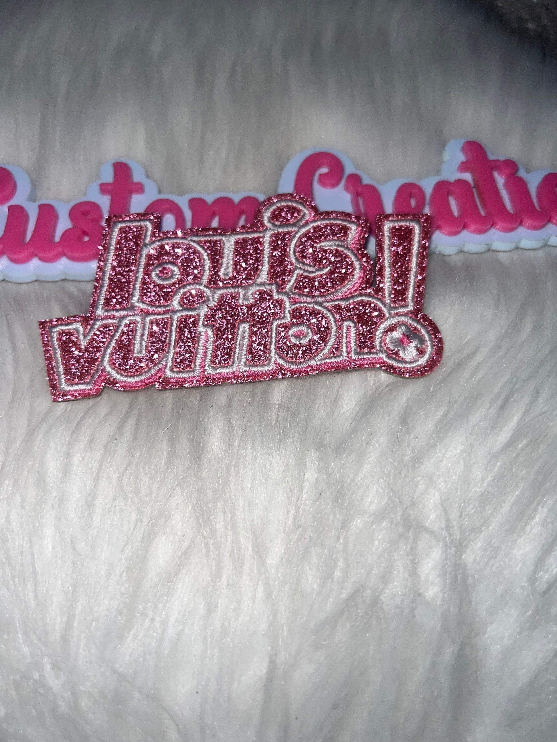 Add sparkle with this LV design featuring a glitter finish and bold lettering.