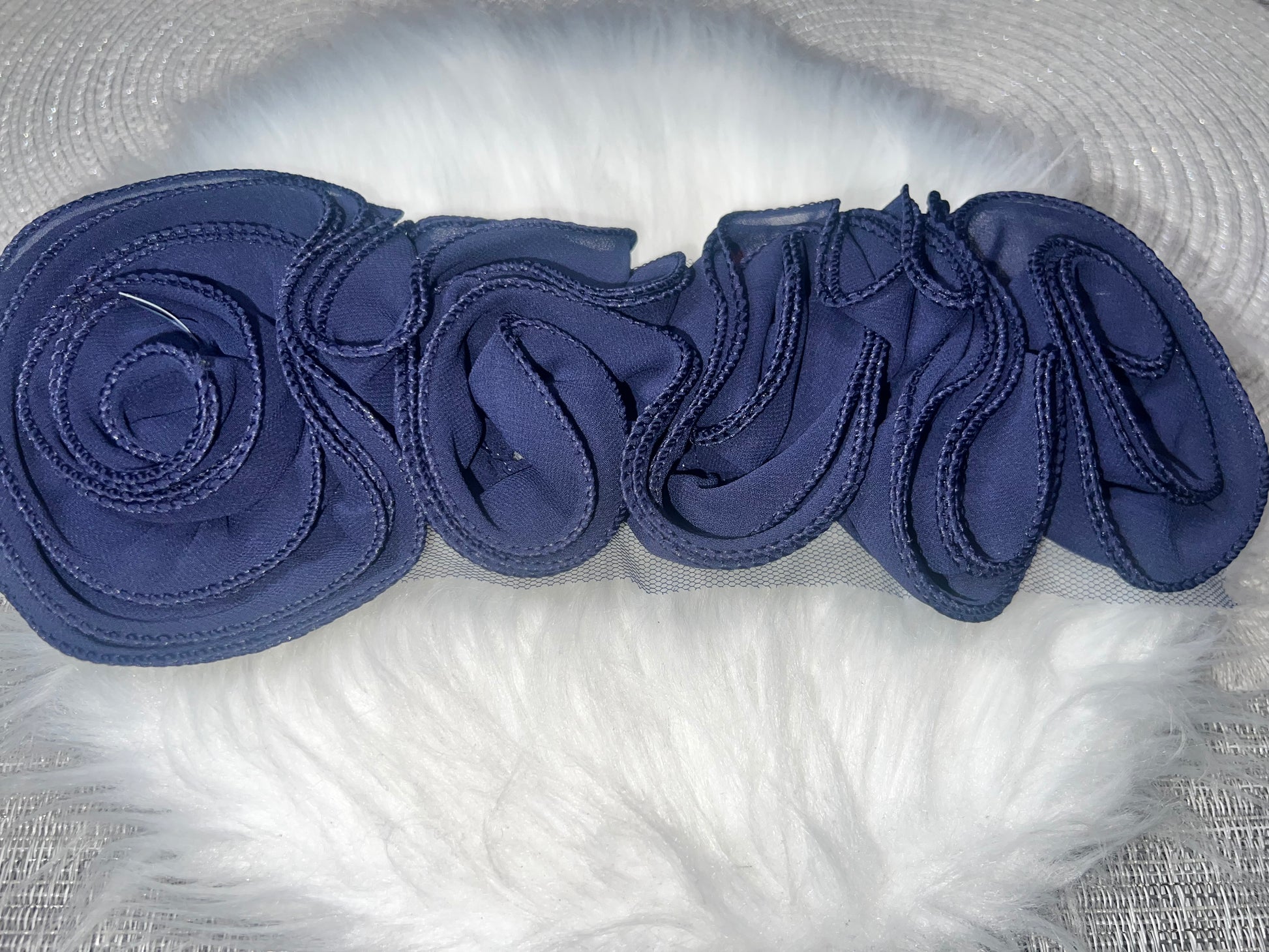 Navy Blue 3D Chiffon Flower Trim
