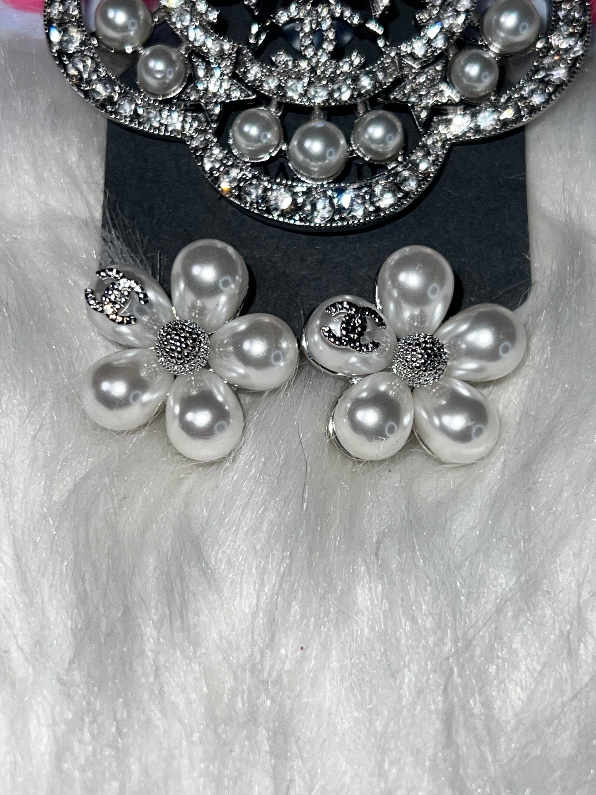 Style: Pearl Rhinestone Floral Brooch + Matching Pearl CC Earrings