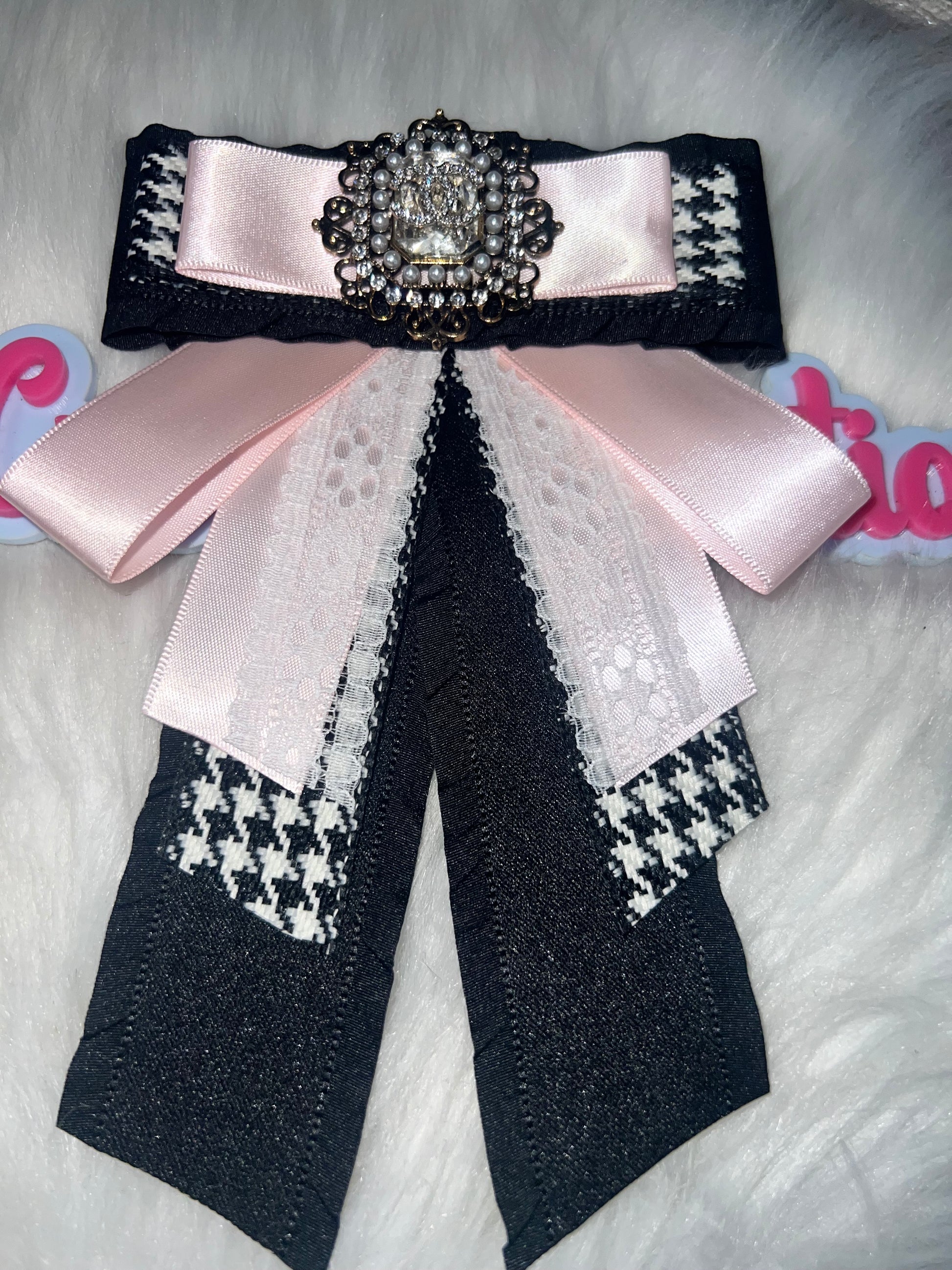 Pink & Houndstooth CC Ribbon Brooch Tie