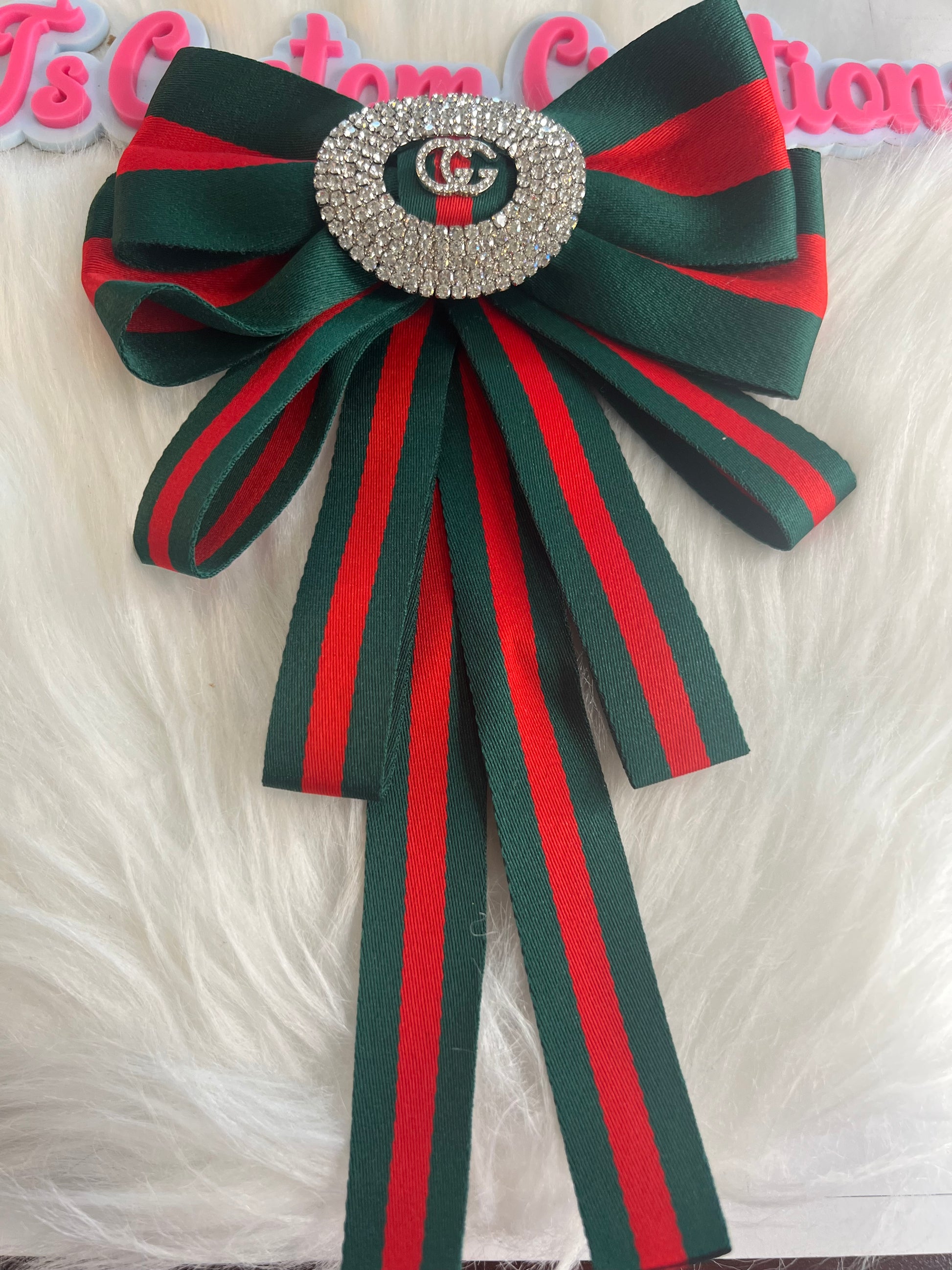 Red Green Bow Ribbon GG Brooch