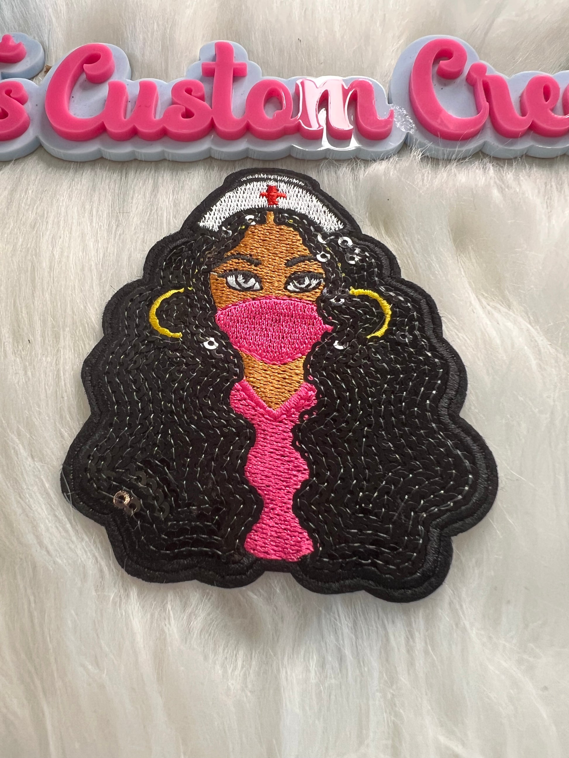 Sequin Black hair Pink Nurse